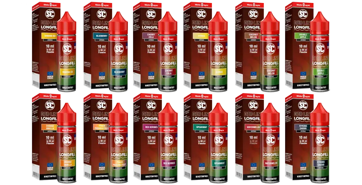 Die Liquids der SC Red Line Serie sind mit intensivierten Geschmacksrichtungen formuliert, die Ihnen bereits von Einweg-E-Zigaretten bekannt sind. Dadurch bieten die SC Red Line Longfillaromen im niedrigen Leistungsbereich ein stärkeres Aroma im Vergleich zu herkömmlichen Liquids.